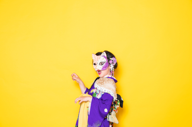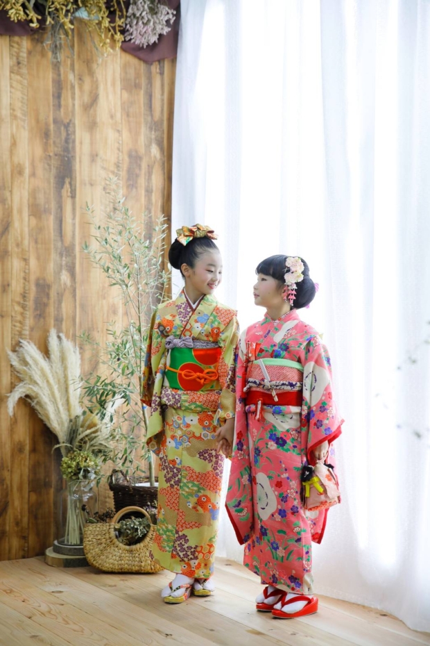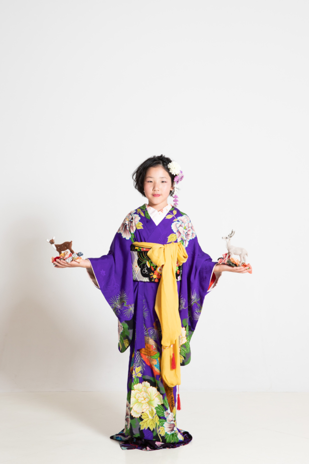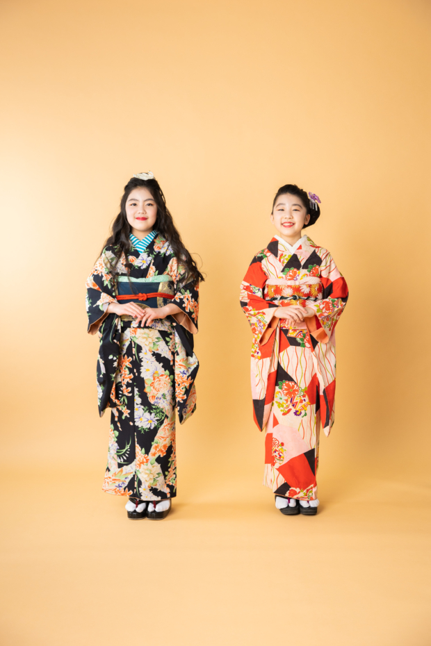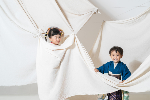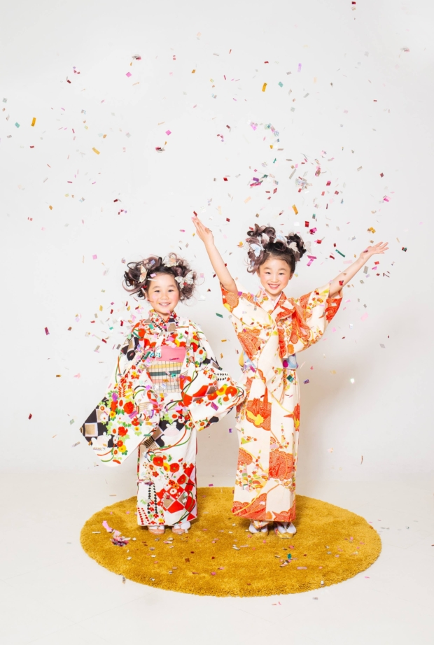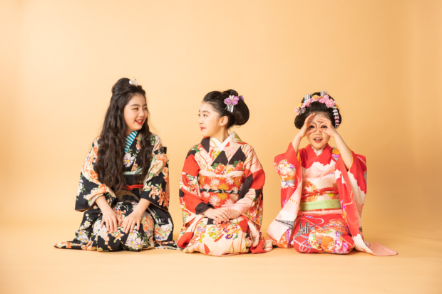 Fashion-show-style fun and lively photoshoots for kids wearing vintage kimono.