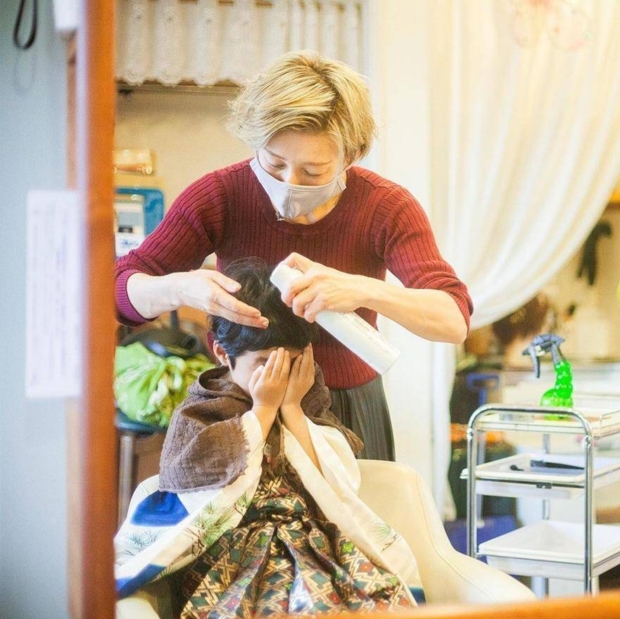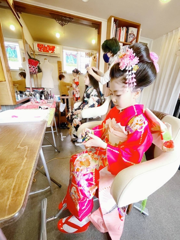美容室アカリが貸切の空間となり、お支度が進んでいく中